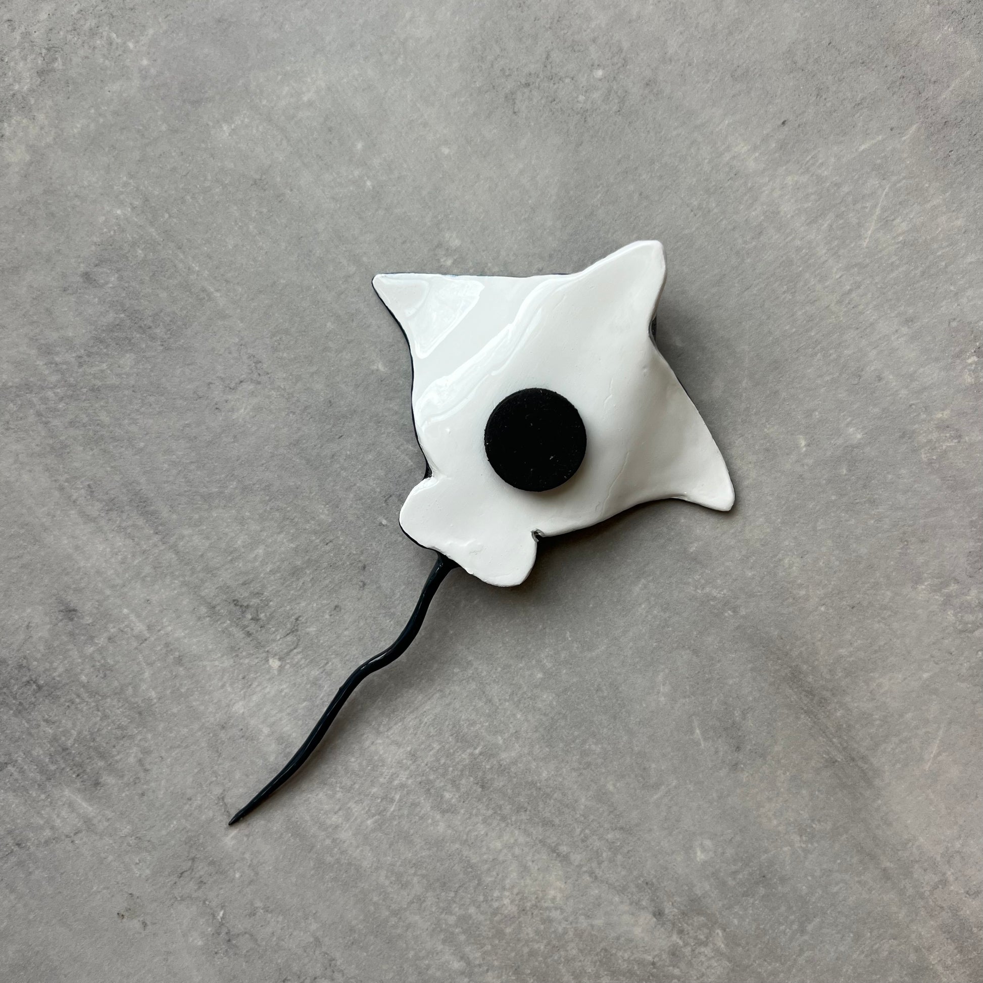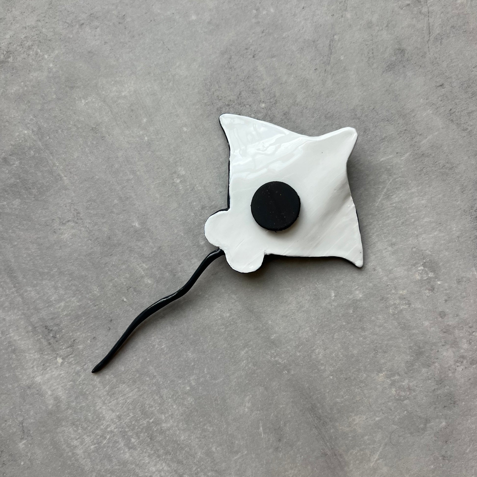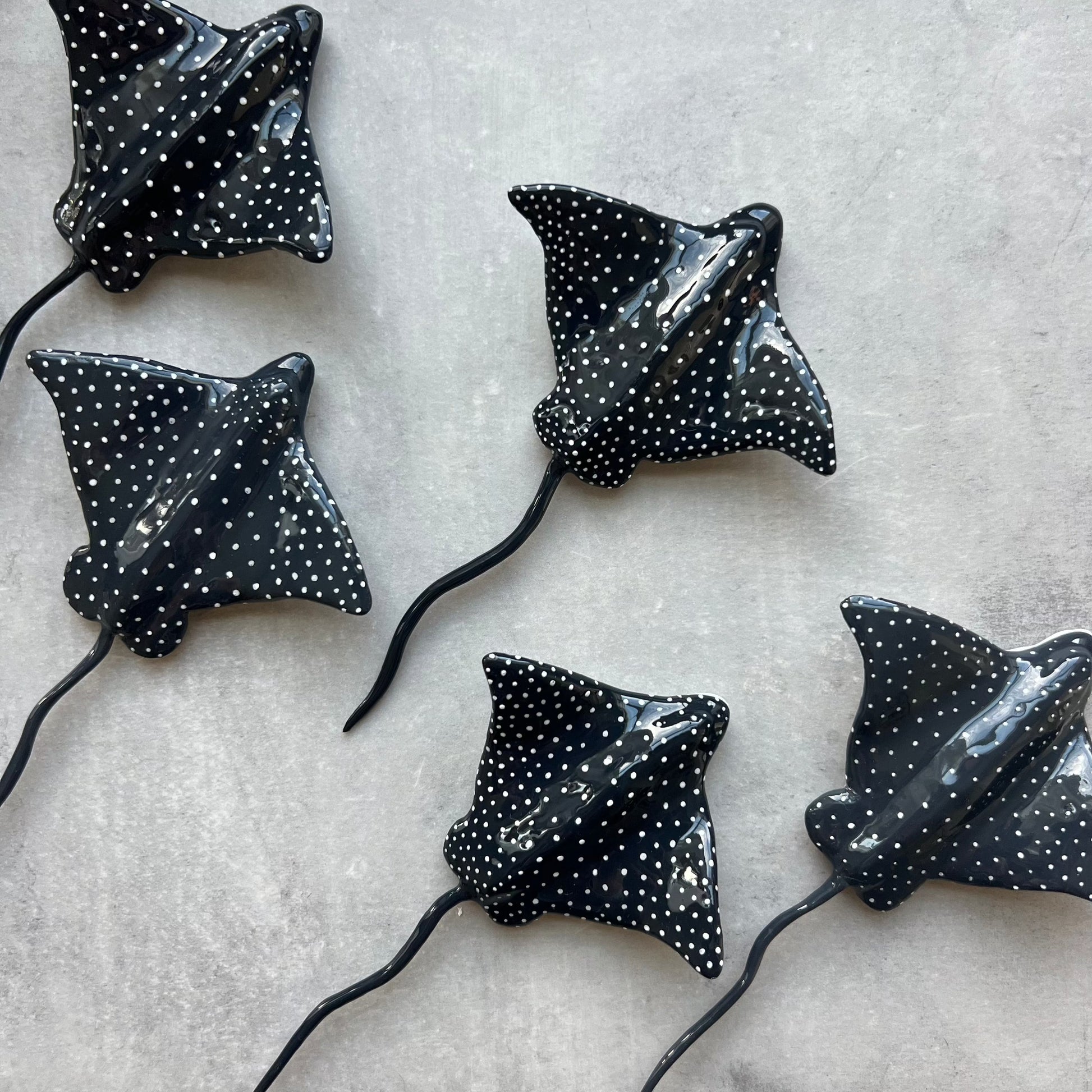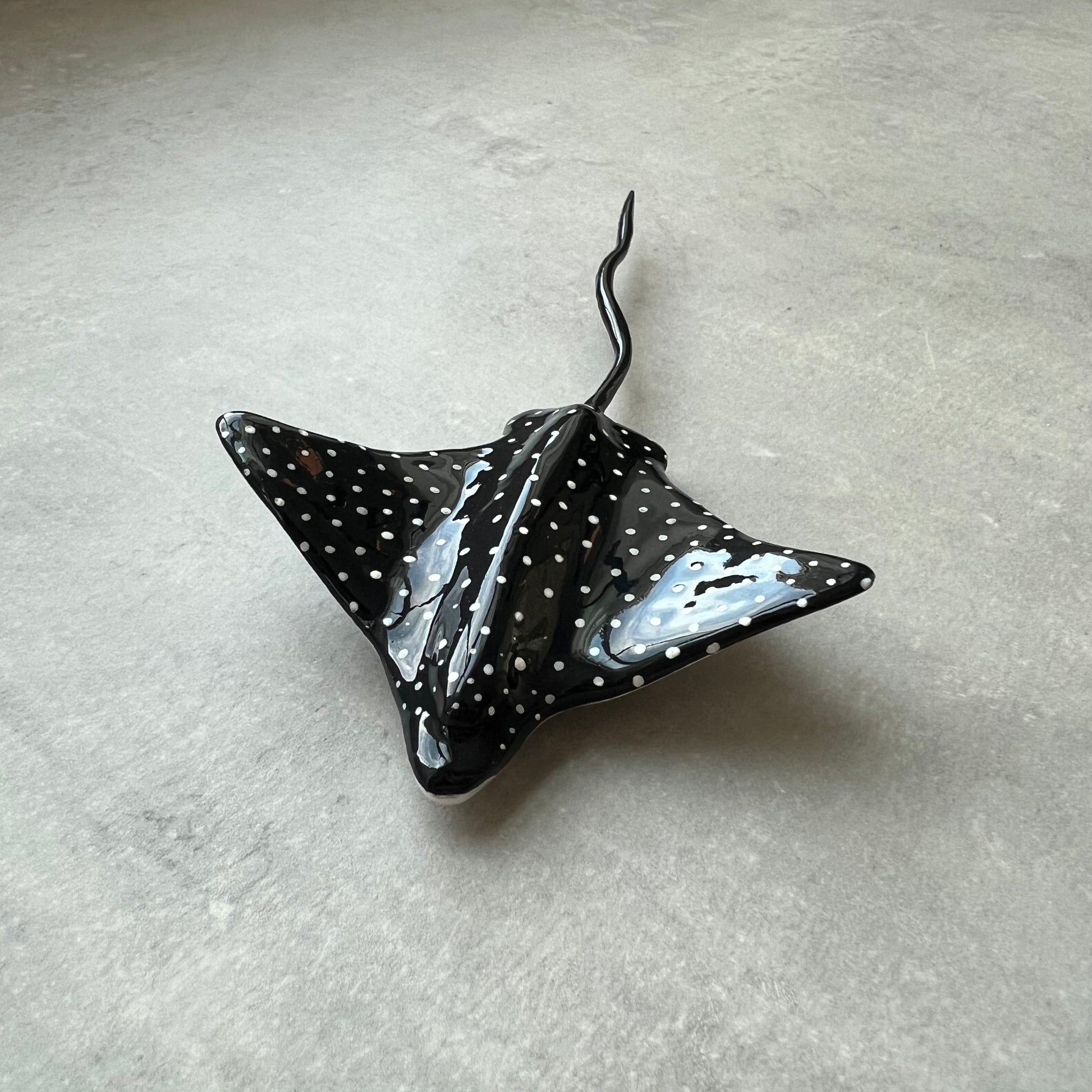 Add a touch of the sea to your space with a handmade spotted eagle ray magnet. Created from air-dry clay, each ray highlights the distinctive shape and spots of the graceful ocean-dwellers. Perfect for your fridge or office, this unique magnet is hand-crafted, so no two are the same.