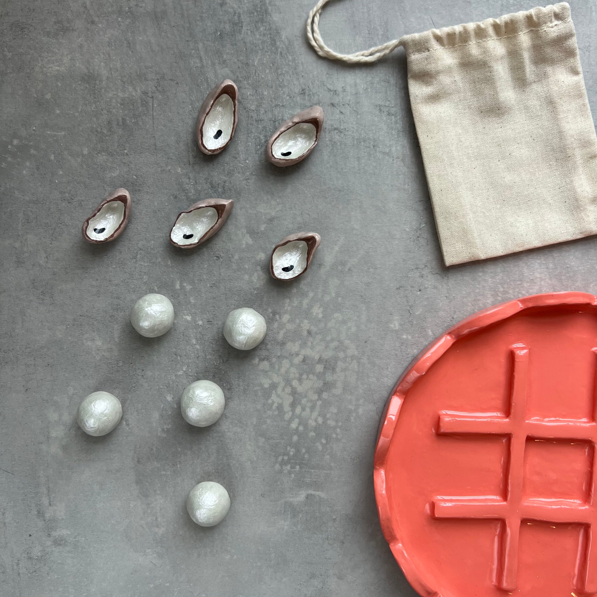 Bring a touch of coastal charm to your home with this unique oyster and pearl themed tic-tac-toe board. It's the perfect handmade gift for the seashell obsessed person in your life.